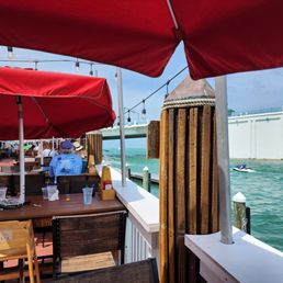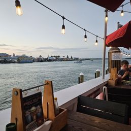 Plenty of seating available inside as well as outside. Fast service and pleasant environment. Specializing in everything seafood. My entree was the mahi with avocado sauce. This was $23.99 My drink was the strawberry lemonade with rum. There are no prices for the drinks. We started with a dozen oysters for $17.99 Then cod fritters for $12.99 The prices for the entrees range from $23-28 The food was very good so I felt it was worth the cost. Plus we had window seating so we could look over the water.